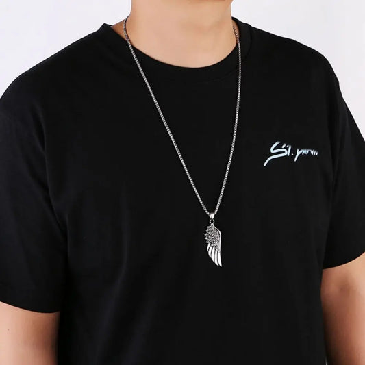 70cm Vintage Titanium Steel Long Feather Wings Pendant Necklace for Cool Men-Wannee Hip Hop Accessory