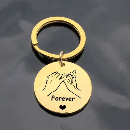 Simple Forever Love Gold Silver Round Stainless Steel Pendant Keychain for Sweet Friend Couple Gift-Wannee Fashion Accessory