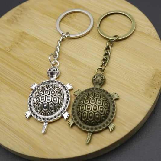 Simple Creative Be Rich Metal Hollow Small Turtle Keychain for Friend Student Gift-Wannee Fashion Accessory