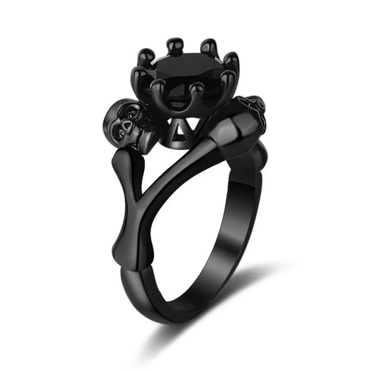 Punk Black Zircon Y Skull Copper Rings for Personality Women-Wannee Fashion Accessory