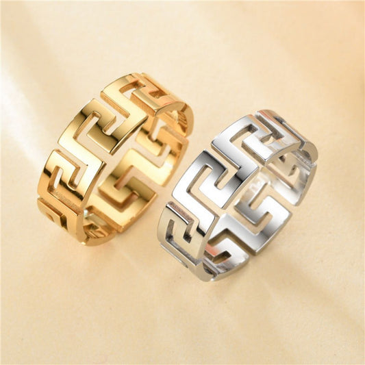 Personality Ground Stainless Steel Hollow Out The Great Wall Ring for Trendy Couple Men Women-Wannee Fashion Accessory