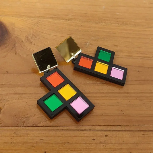 Classics Personality Popular Colorful Geometric Square Acrylic Stud Earring for Trend Women-Wannee Fashion Accessory