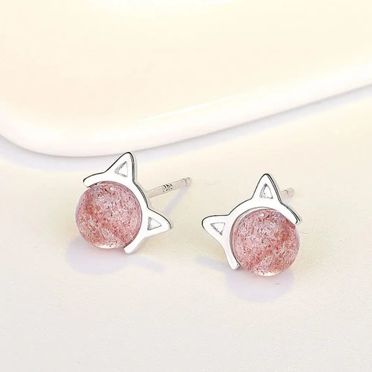 Simple Cat Design Pink Strawberry Cute Small Stud Earring for Sweet Fashion Lady-Wannee Fashion Accessory