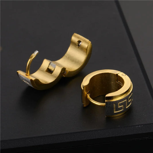 Hot Design Gold Black Silver The Great Wall Stainless Steel Earrings for Fashion Men Women-Wannee Accessory