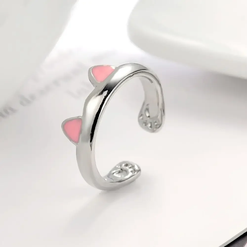 Minimalist Cute Cat Ear Creative Metal Open Ring for Student Girl Gift-Wannee Fashion Accessory