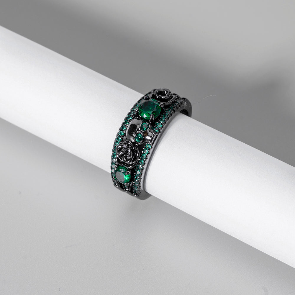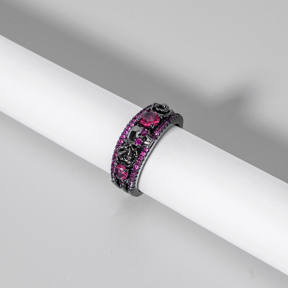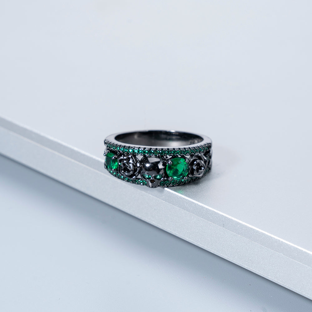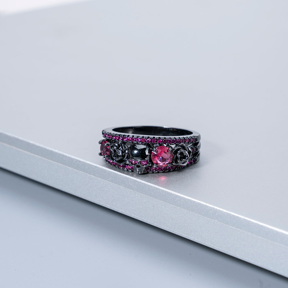 Vintage Punk Flower Skull Zircon Copper Rings